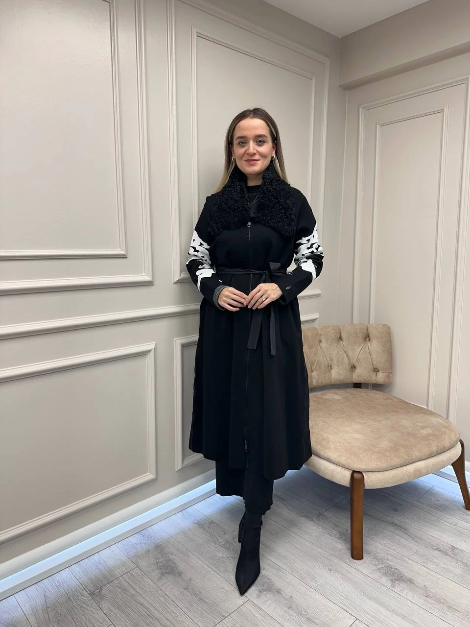 Misswhence Siyah Yanları Fermuar Detaylı Triko Kap
