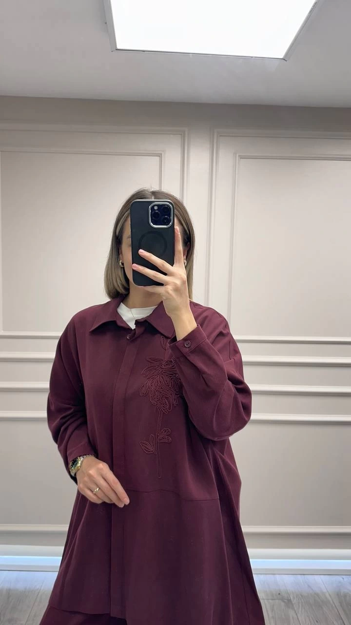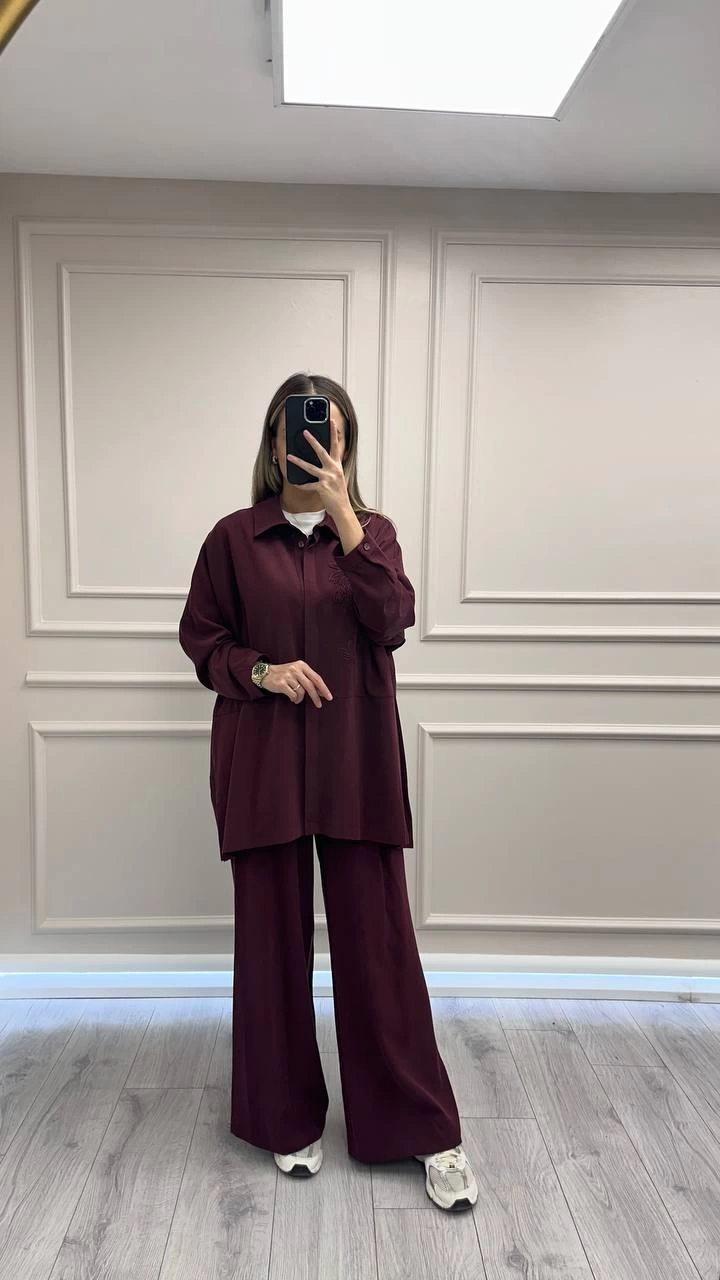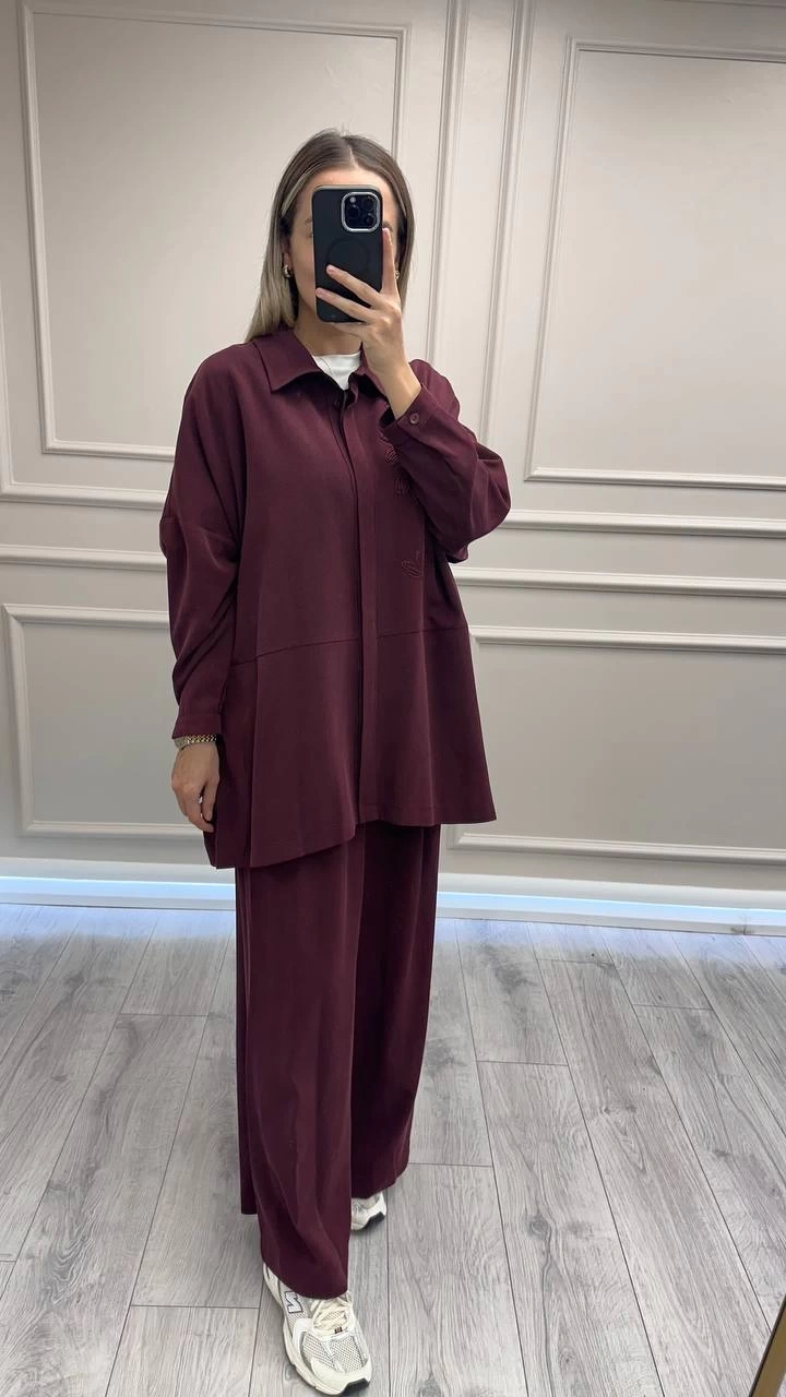 Nuss Triko 26K1034 Mürdüm Önü Detaylı İkili Takım