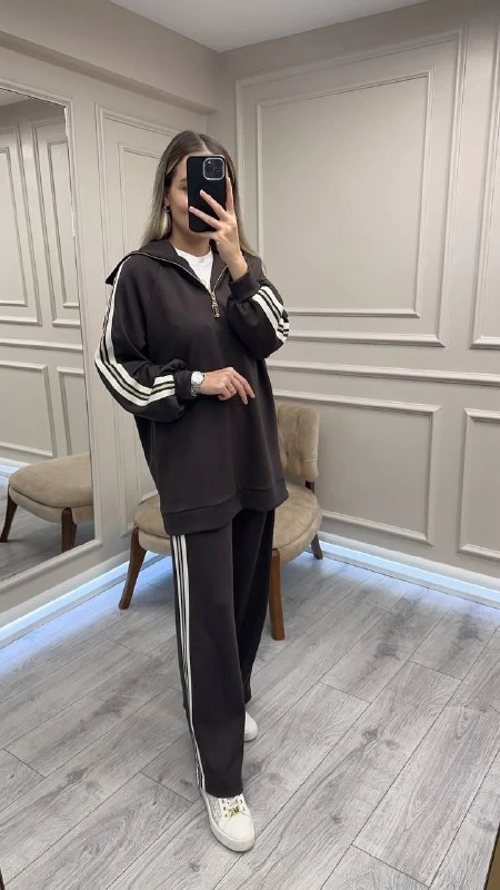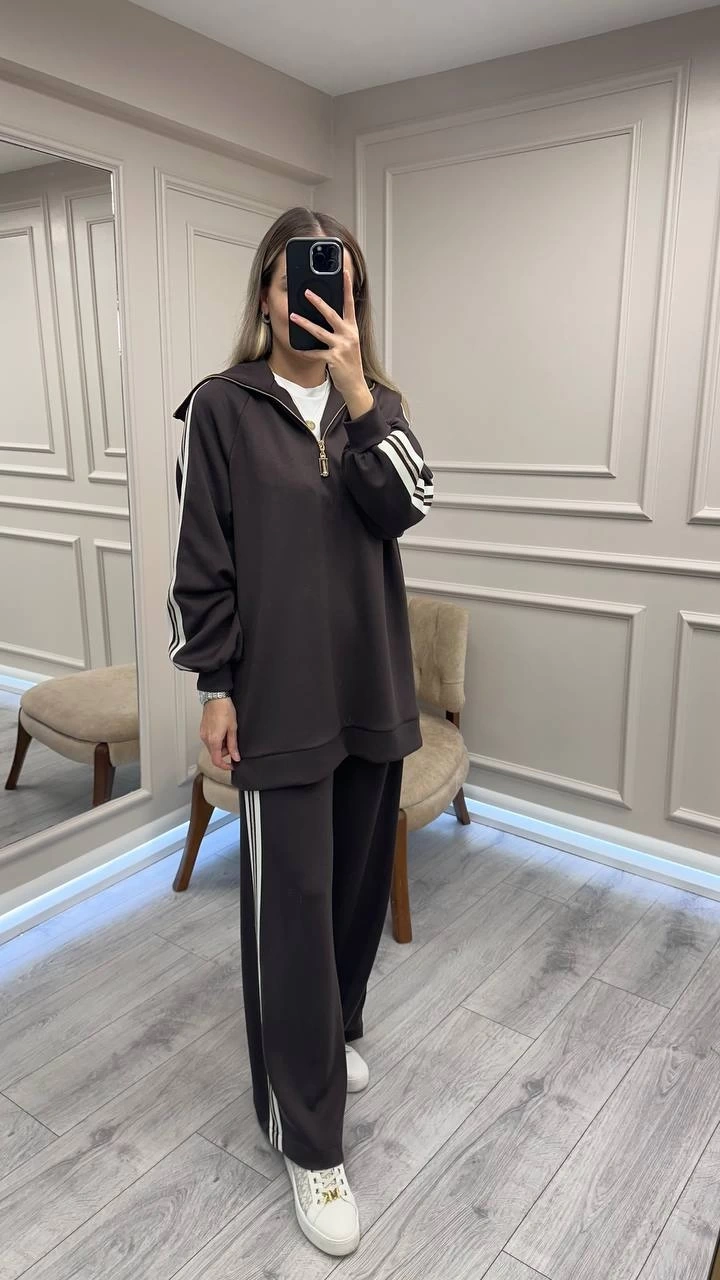 Nuss Triko Kahve Yakası Fermuarlı Takım