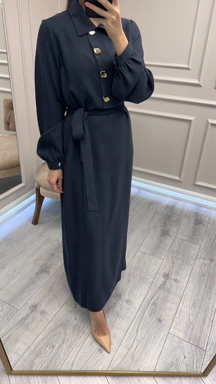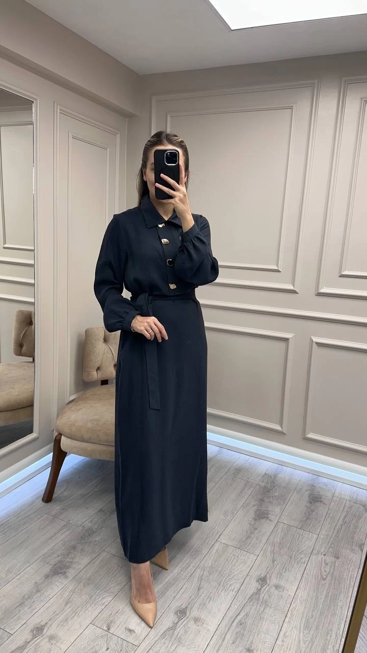 Nuss Triko Lacivert Önü Düğme Detaylı Elbise