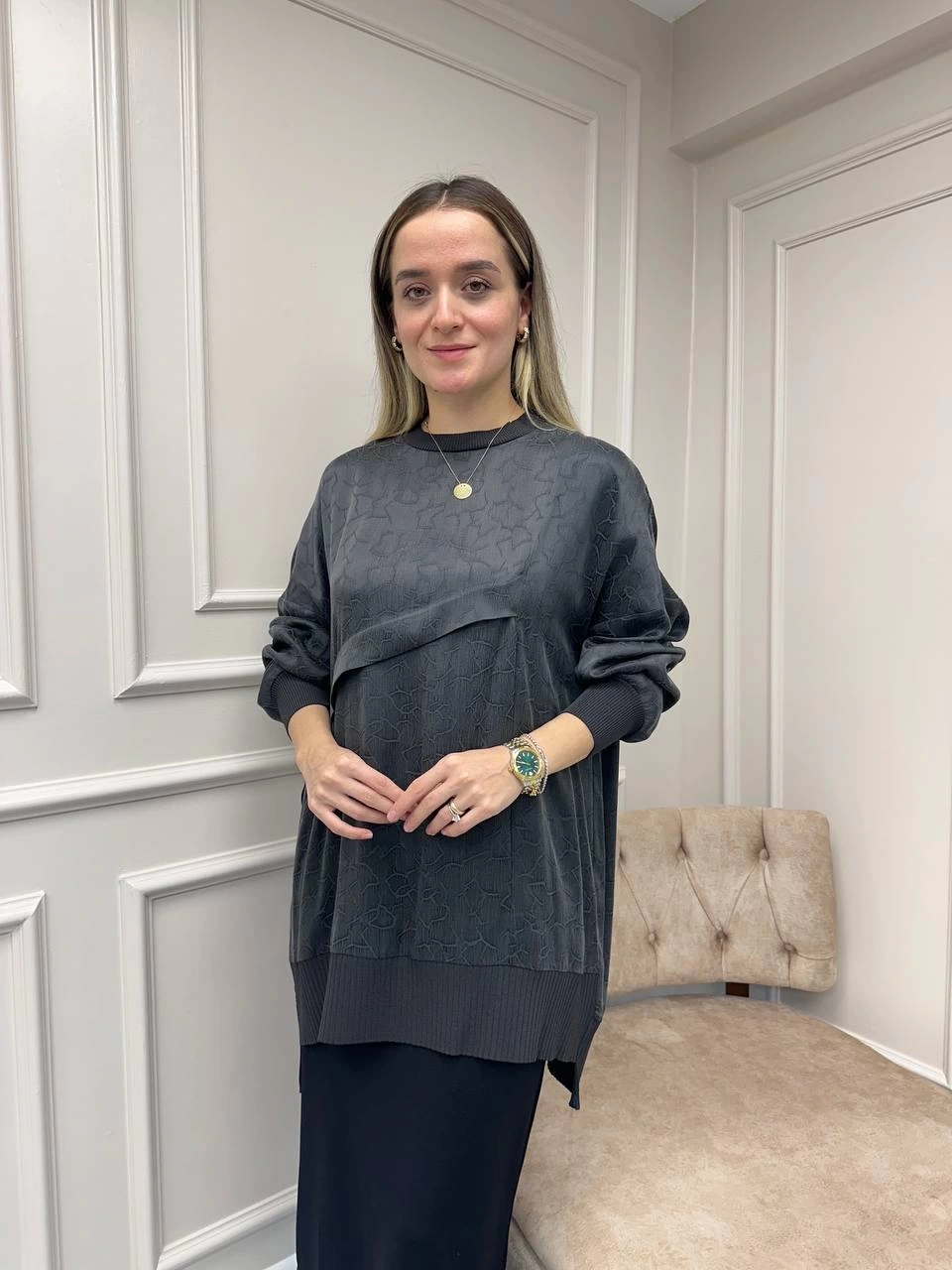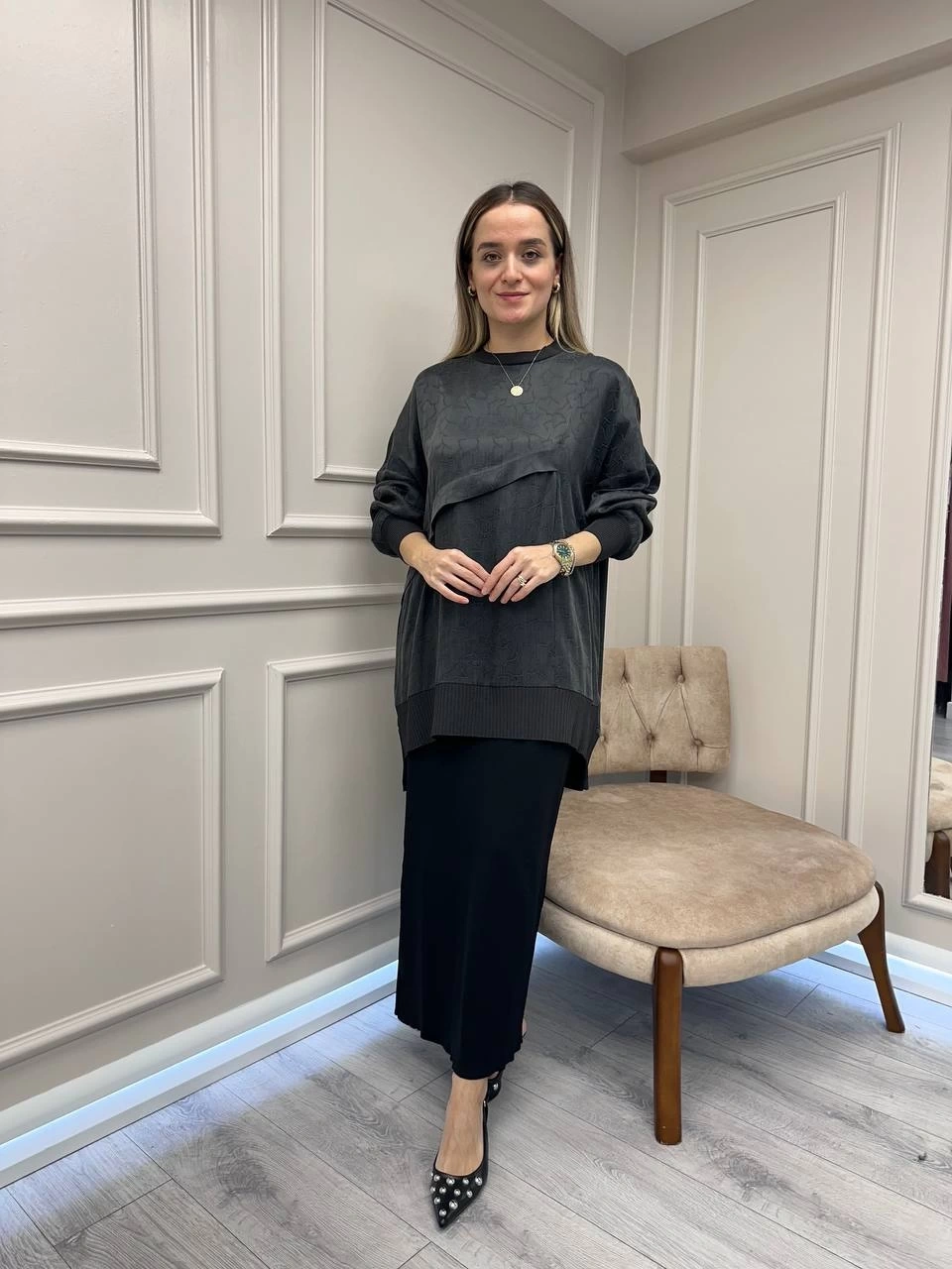 Nuss Triko Antrasit Önü Detaylı Tunik