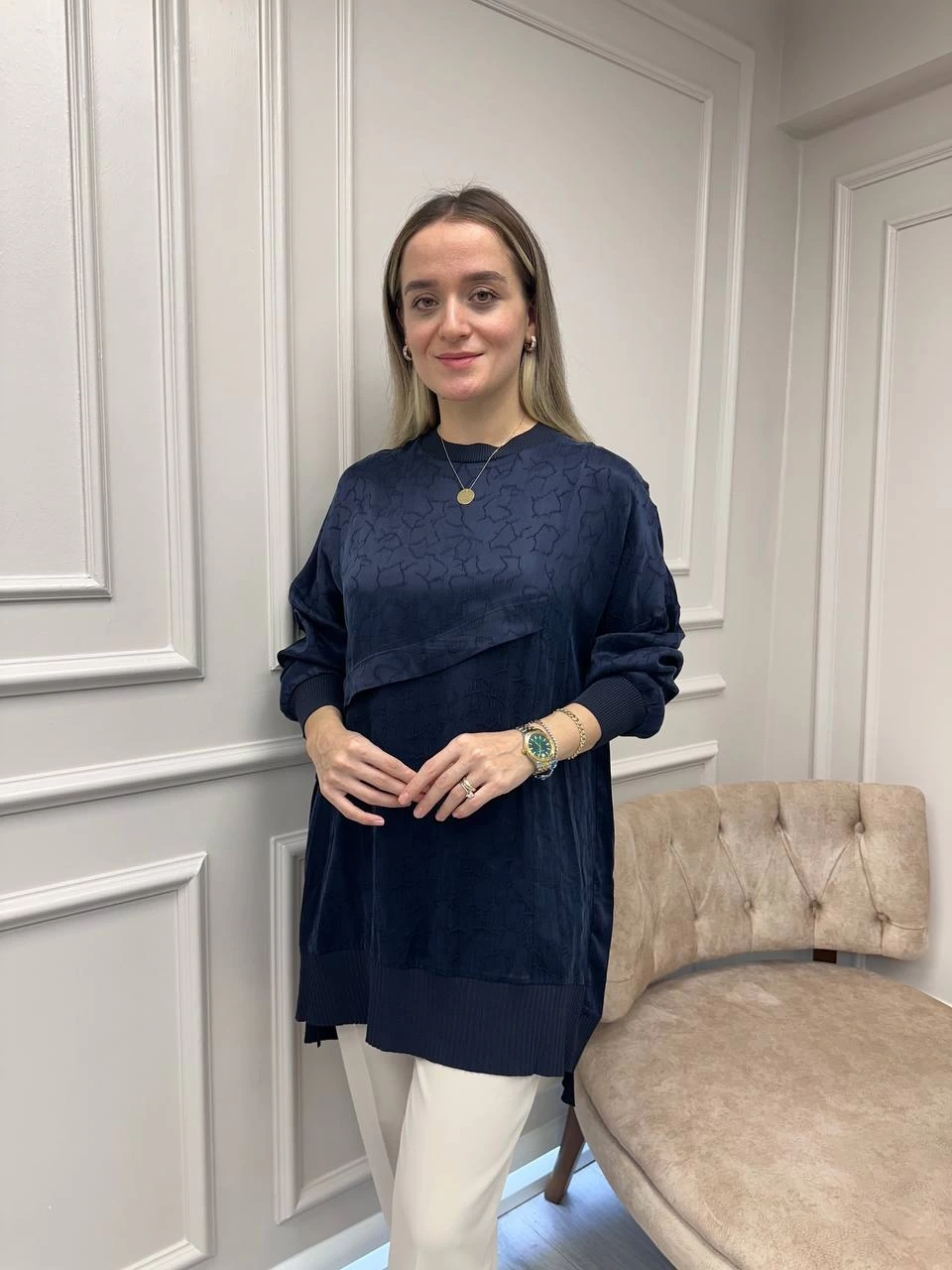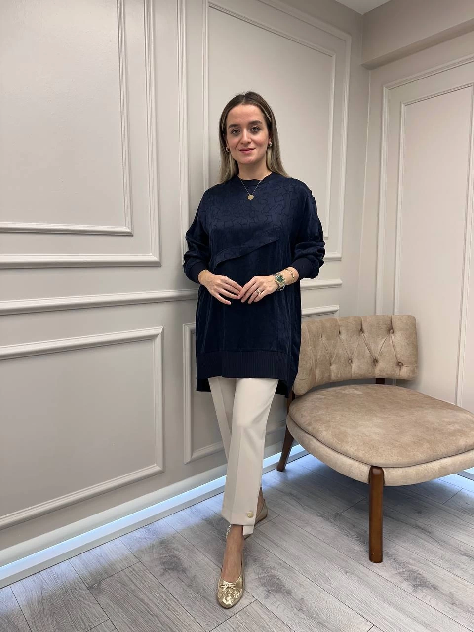 Nuss Triko Lacivert Önü Detaylı Tunik