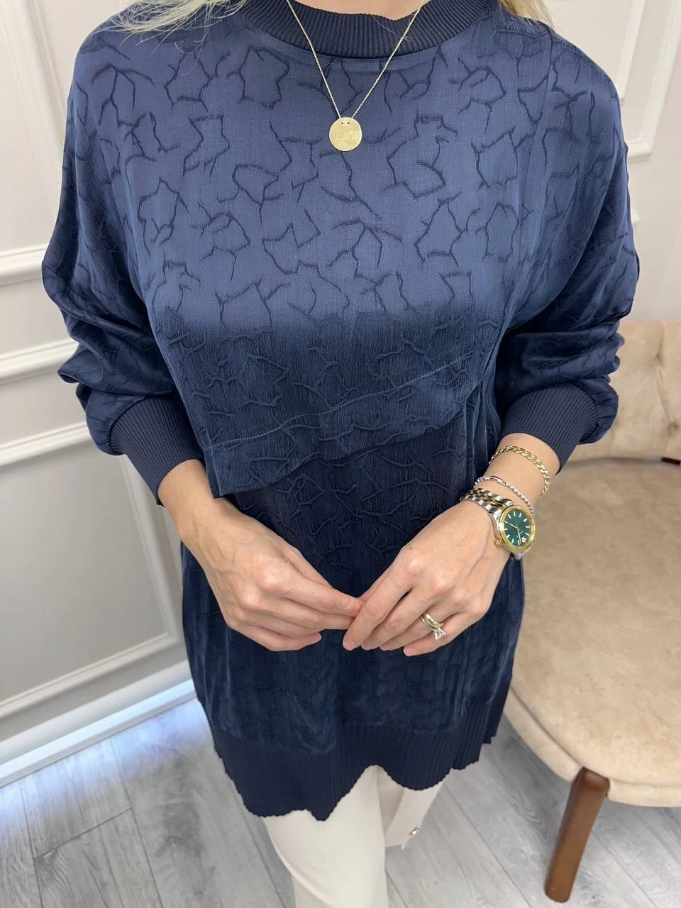 Nuss Triko 26K3003 Lacivert Önü Detaylı Tunik