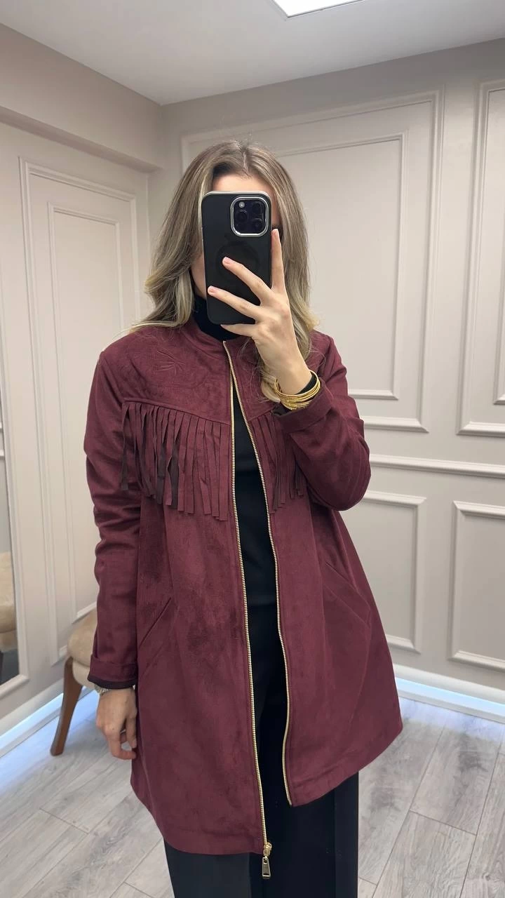 Nuss Triko 26K6028 Mürdüm Yaka Kısmı Detaylı Kap