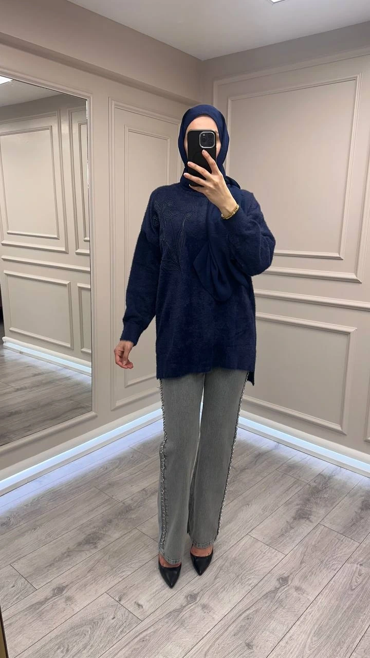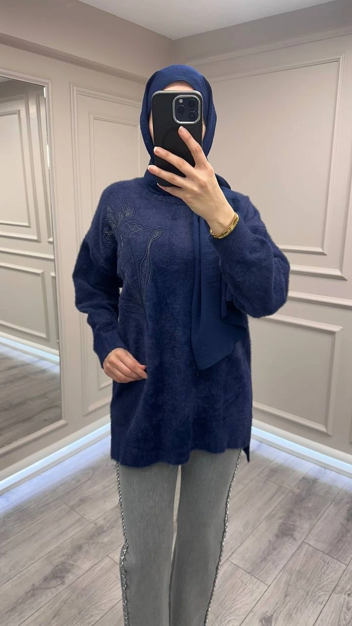 Nuss Triko 26K7004 Lacivert Angora Kazak