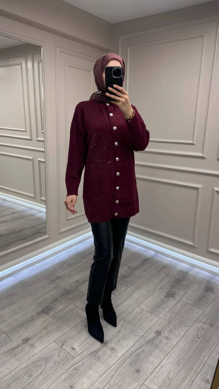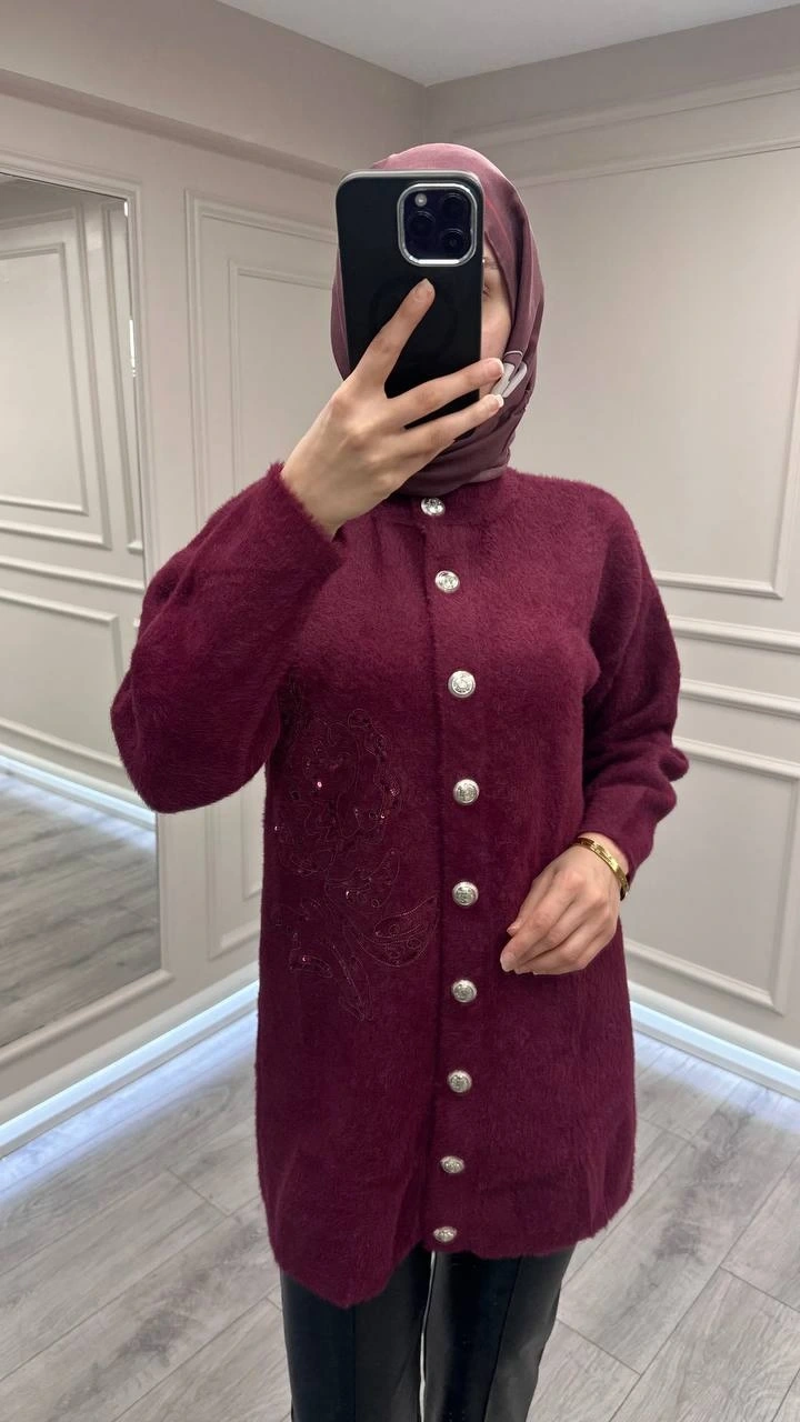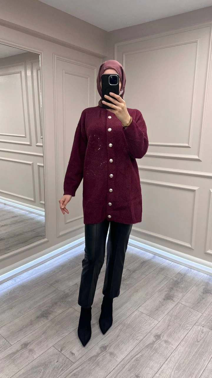 Nuss Triko 26K7007 Bordo Angora Hırka
