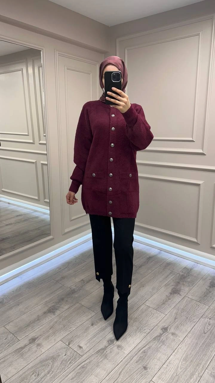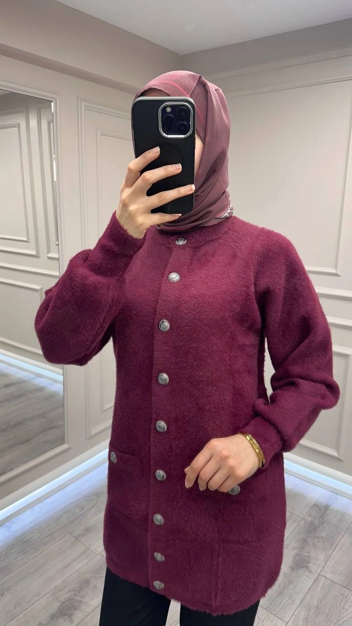Nuss Triko 26K7008 Bordo Angora Hırka