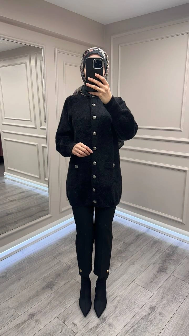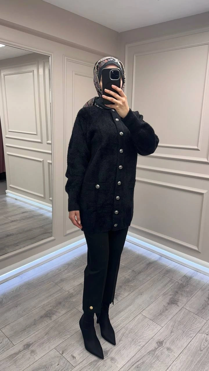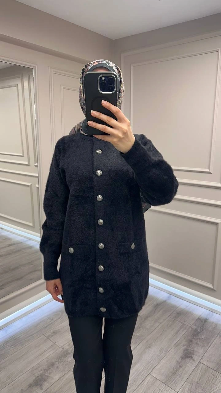 Nuss Triko 26K7008 Siyah Angora Hırka