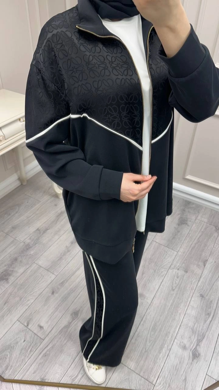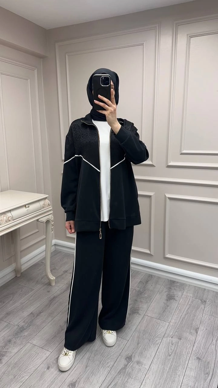 Nuss Triko Siyah Biye Detaylı Takım
