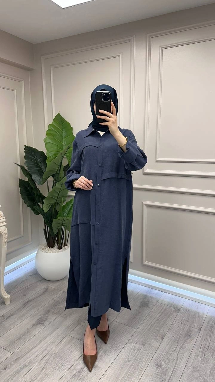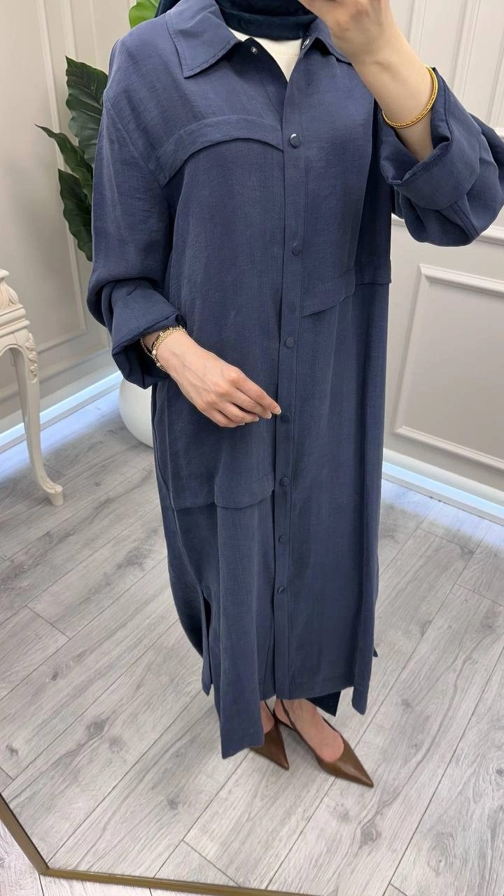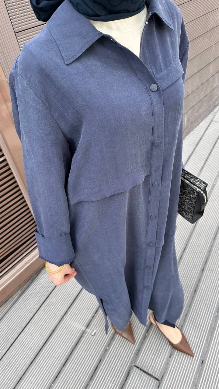 Nuss Triko İndigo Önü Çıtçıtlı Kap