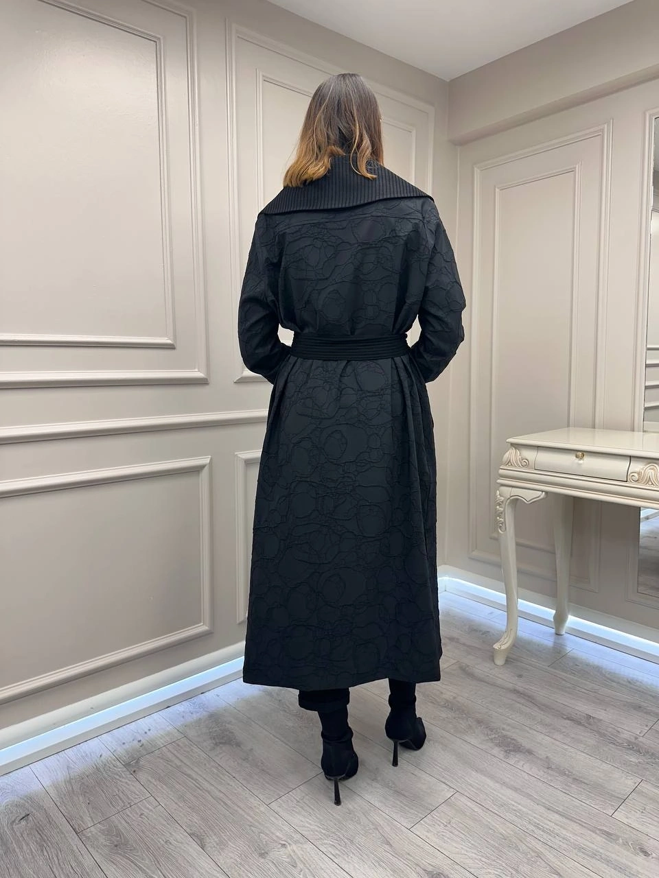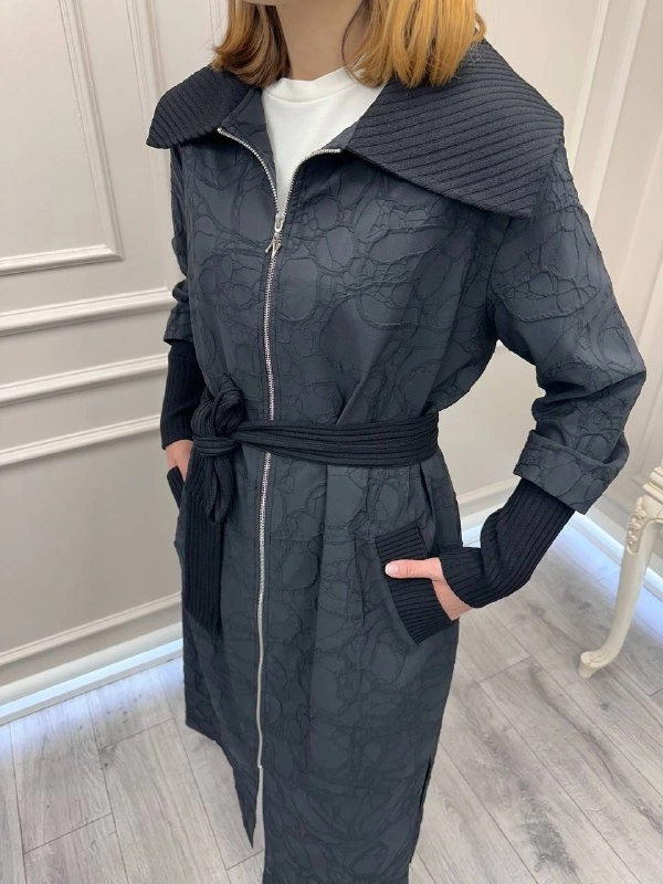 Nuss Triko 26Y6047 Siyah Yanları Yırtmaçlı Kap