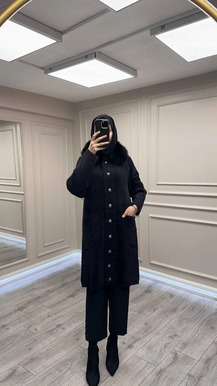 Nuss Triko NS-26K7011 Siyah Angora Kaban