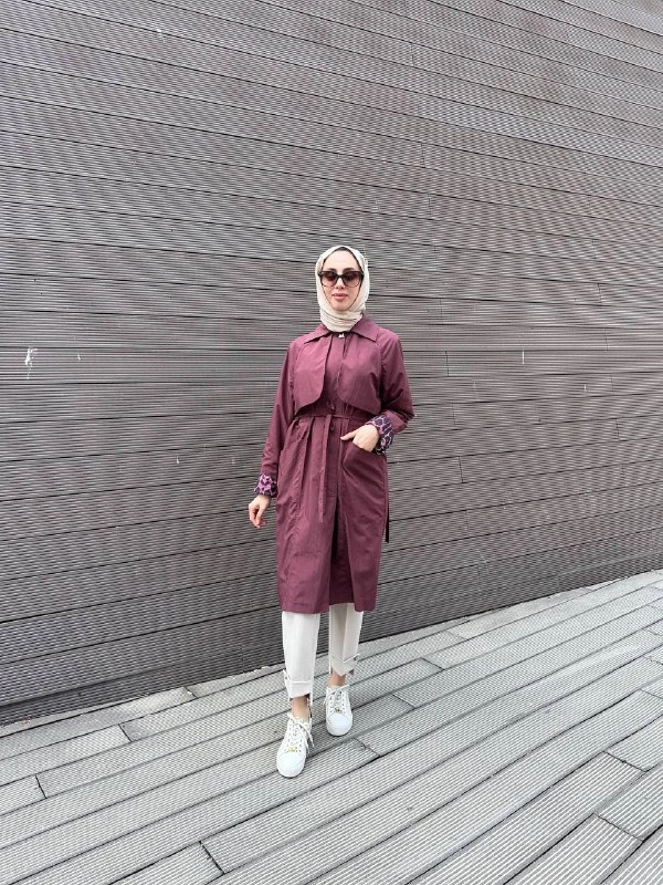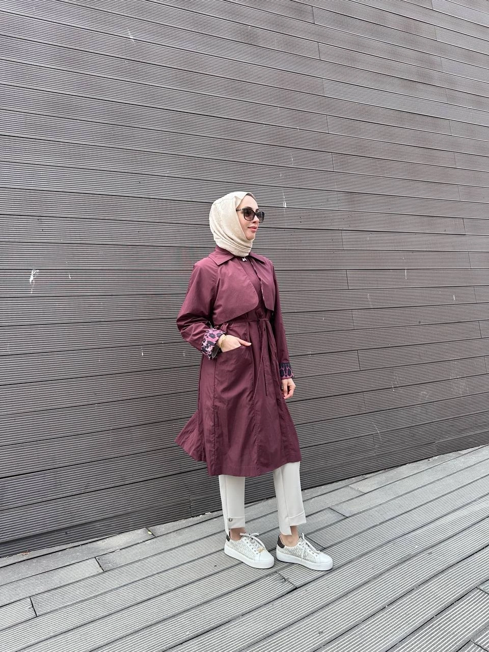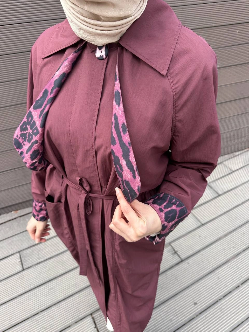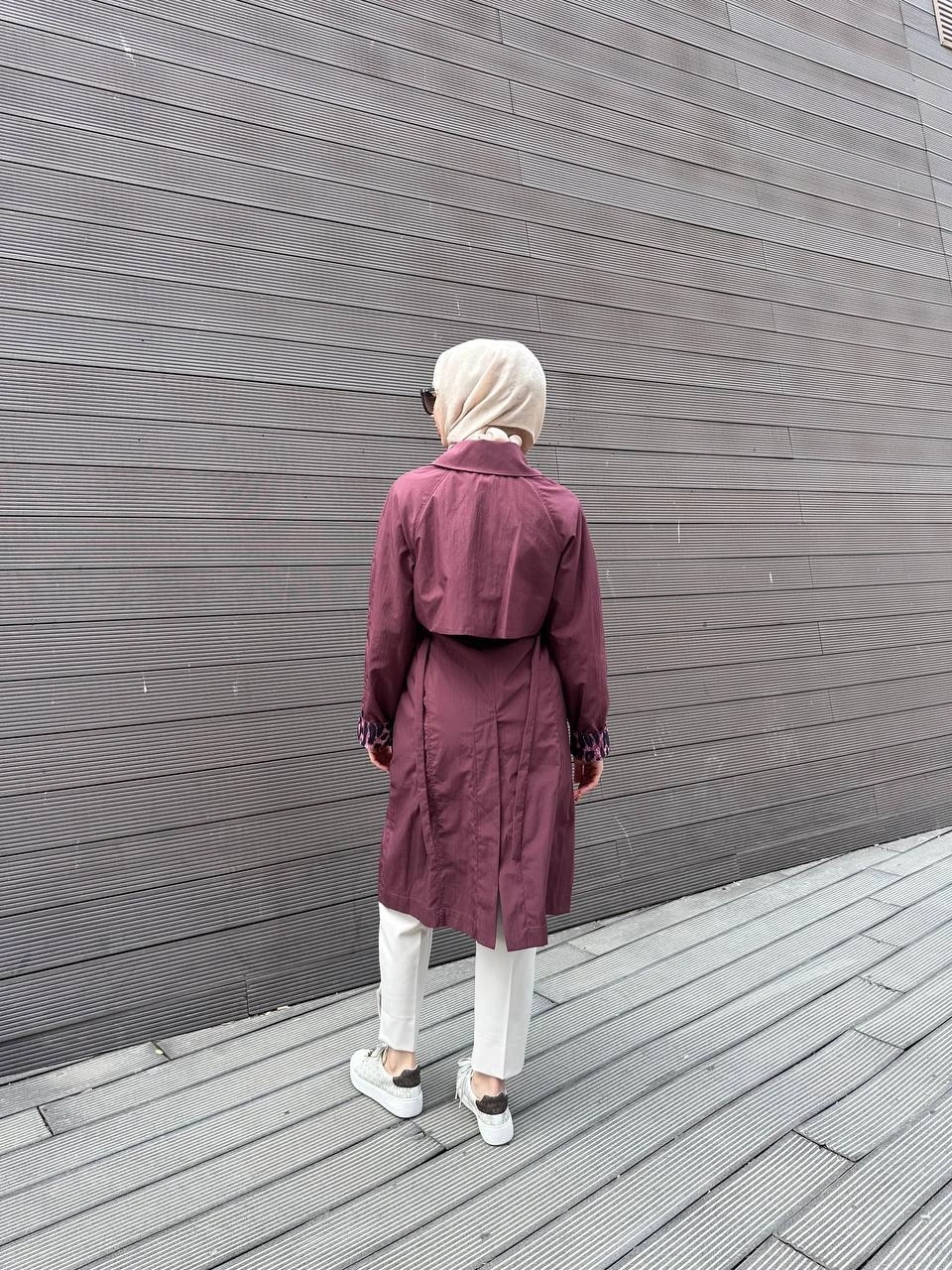 Trenç 3723 Bordo Yaka Detaylı Kap