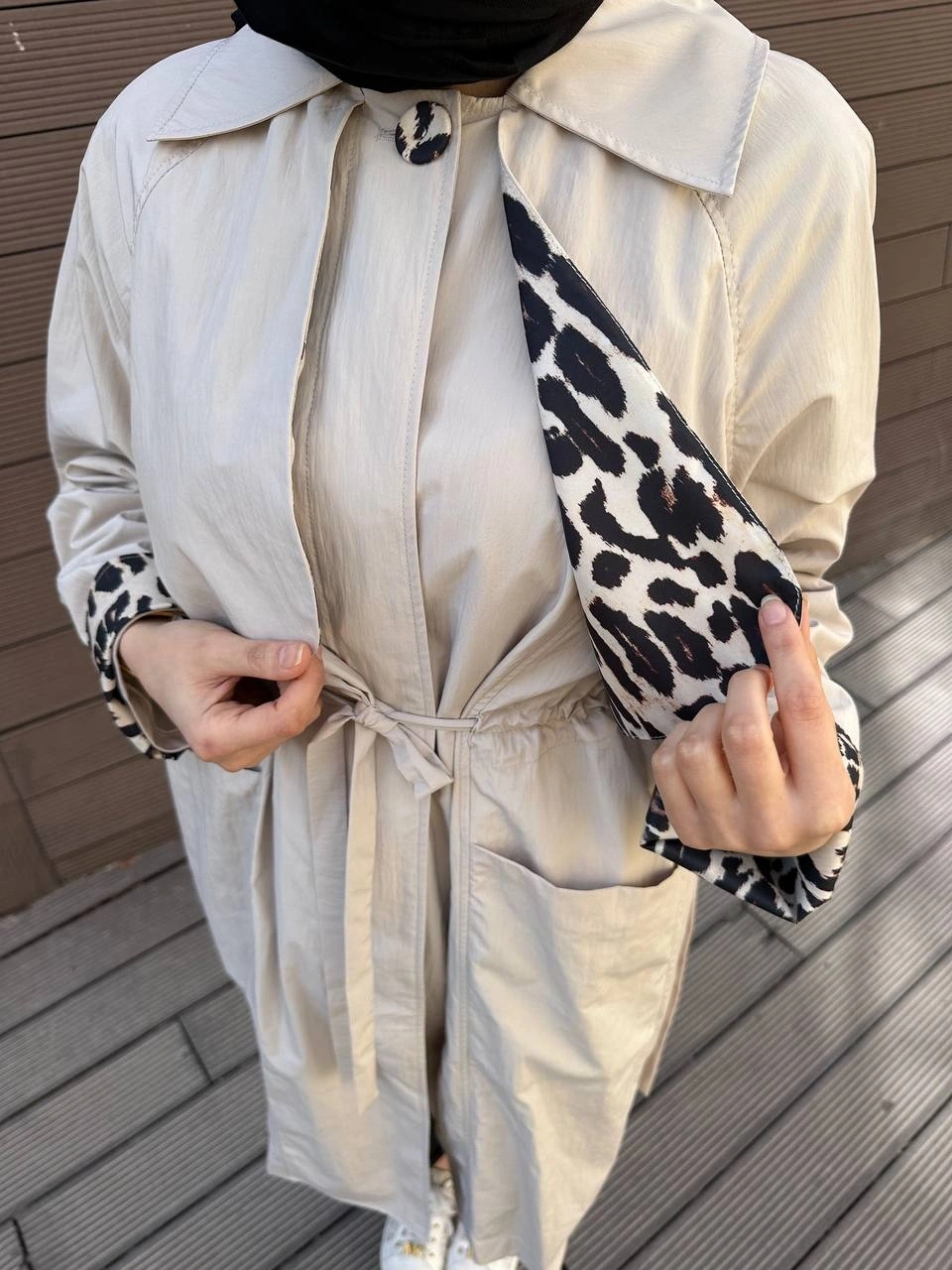 Trenç Taş Yaka Detaylı Kap