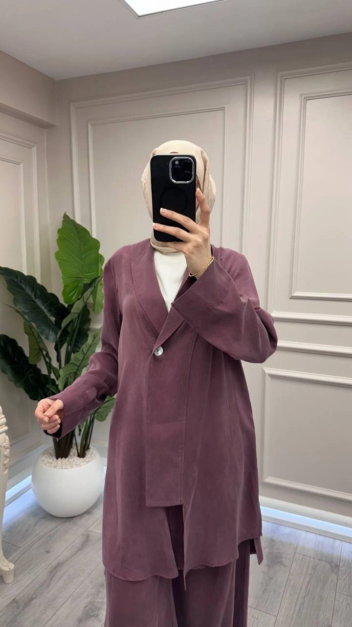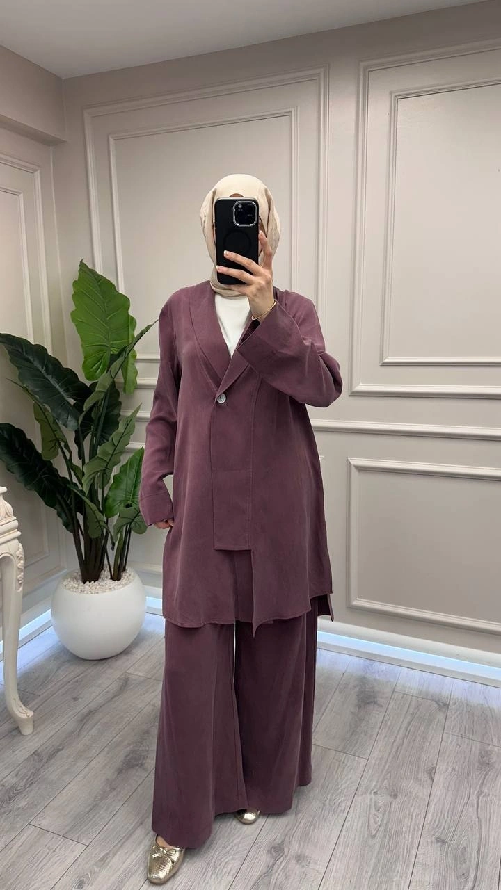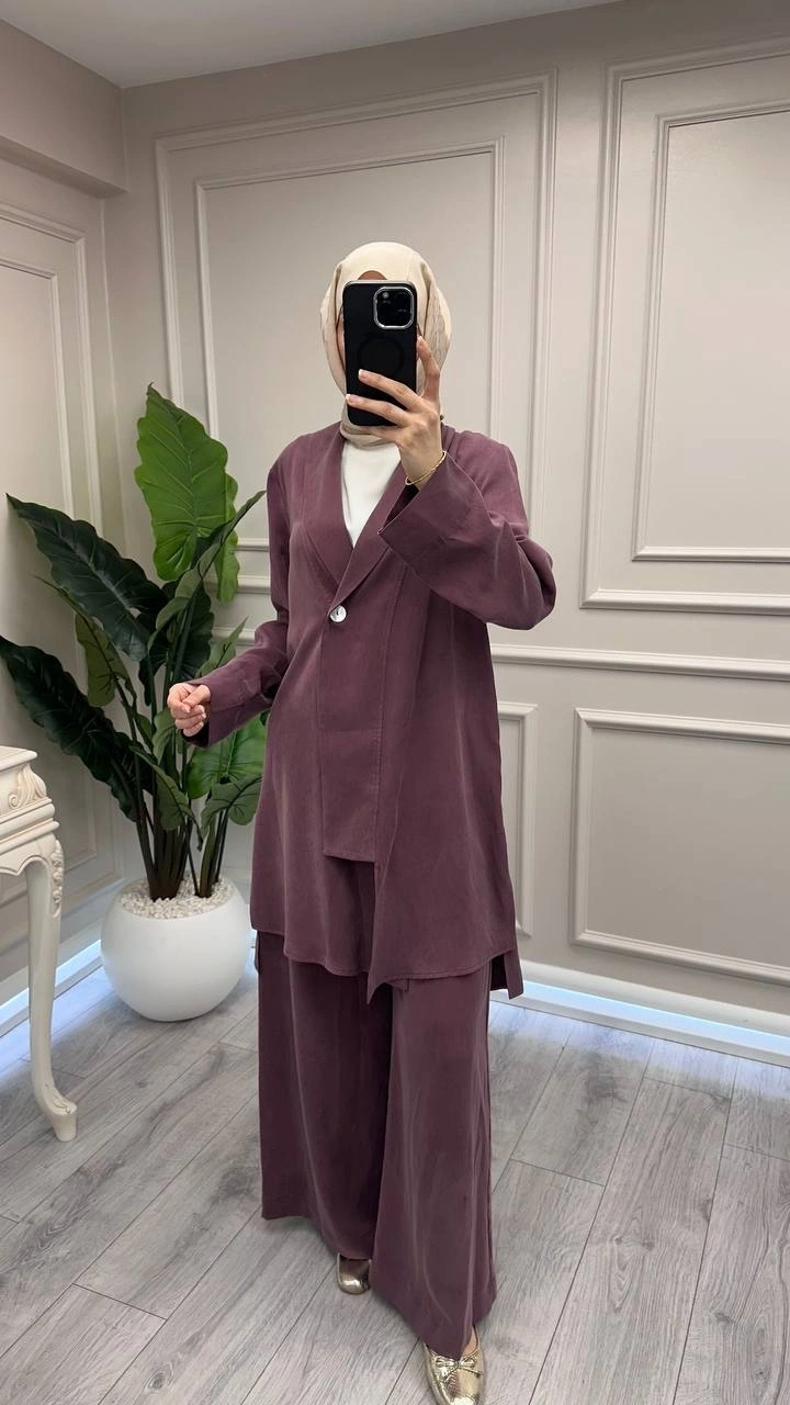 Trenç Bordo Önü Düğmeli Kap Pantolon Takım