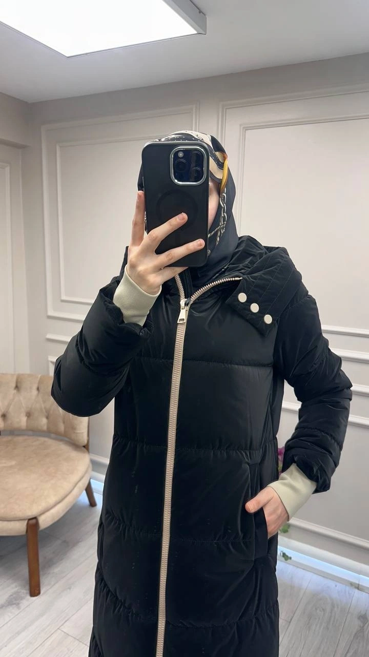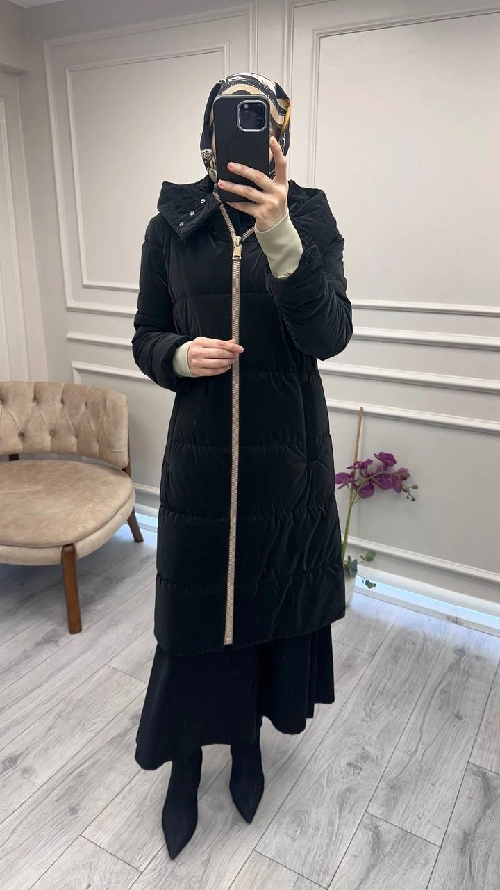 Trenç 5755 Siyah Ribanalı Kapitone Kaban