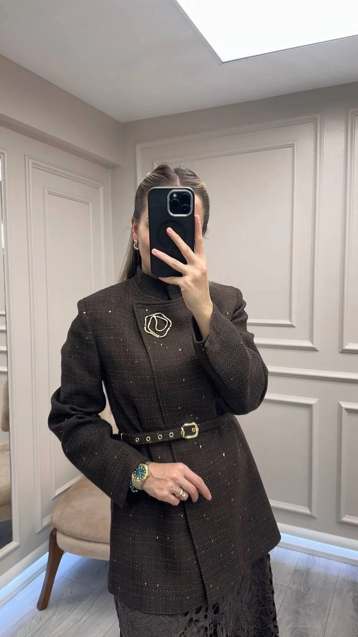 Venöve 26FWCEK0009 Kahverengi Glen Ceket