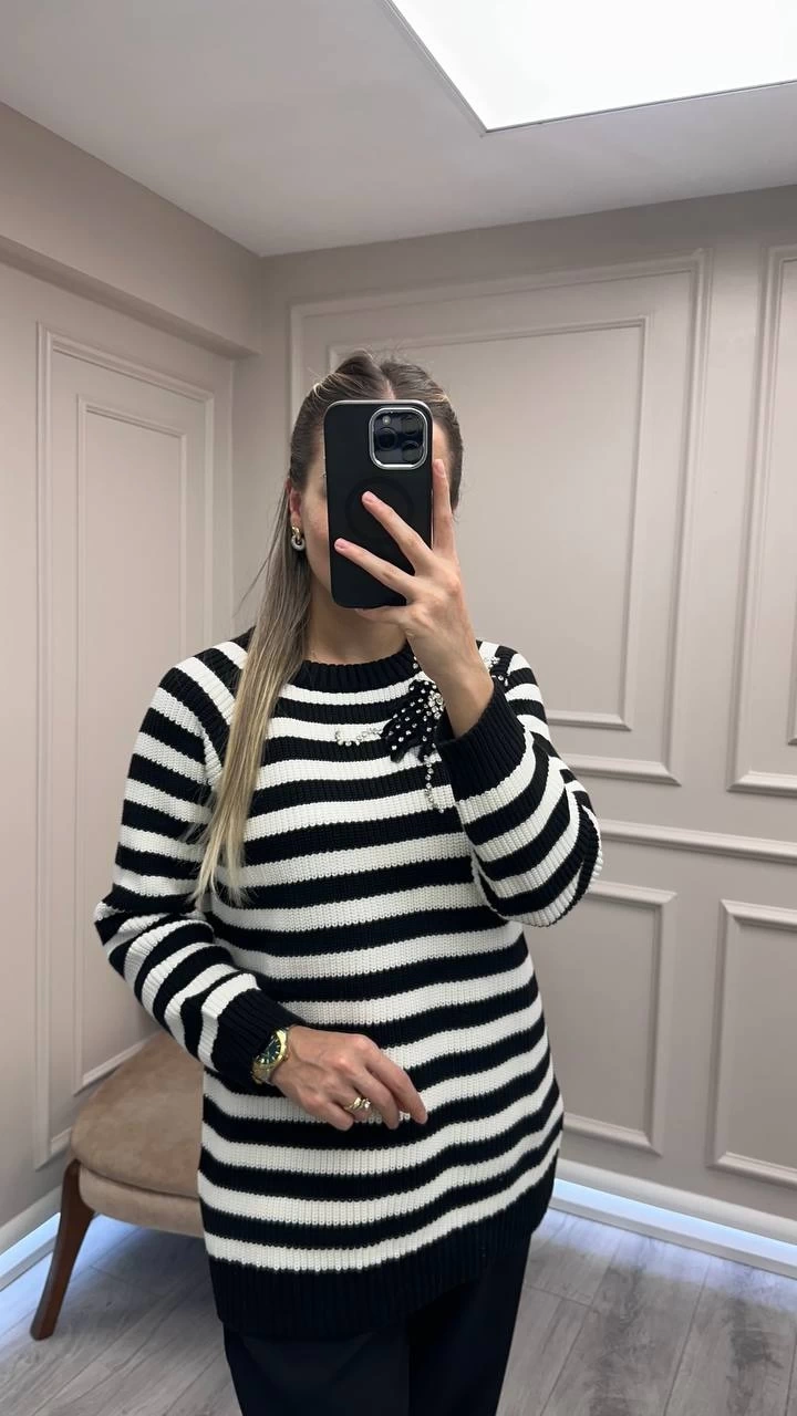 Venöve 26FWTRI0005 Siyah Çizgili Isco Triko
