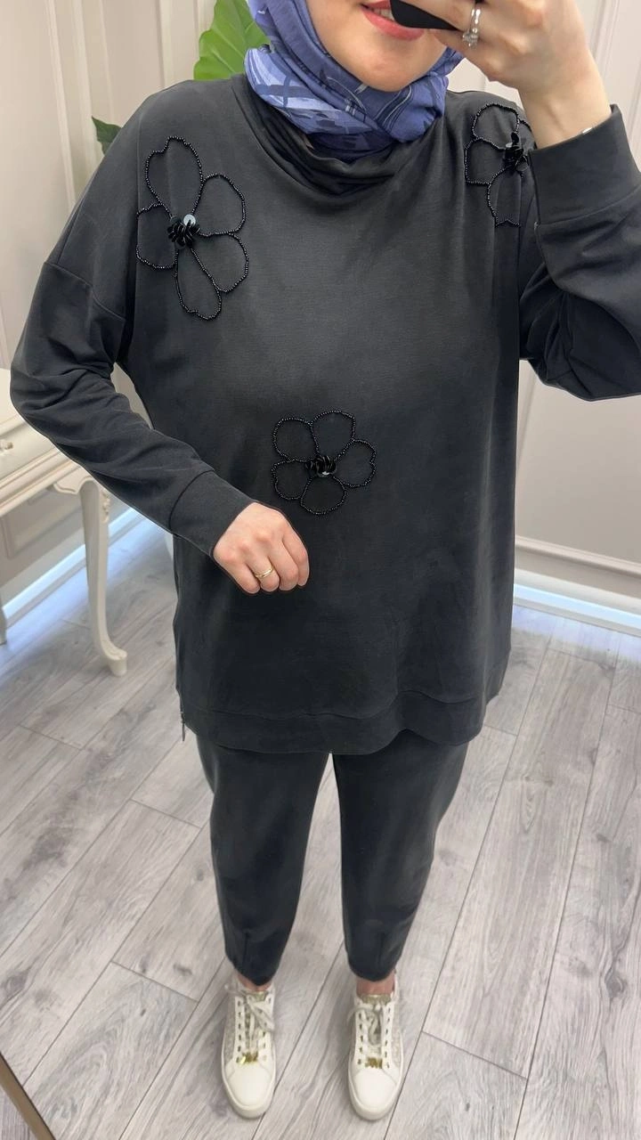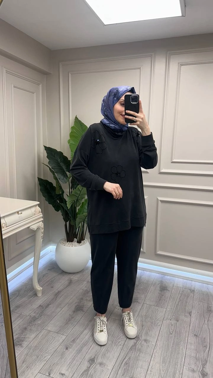 Wennora Siyah Çiçek Desenli Takım