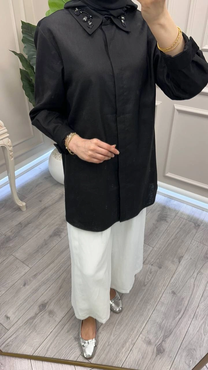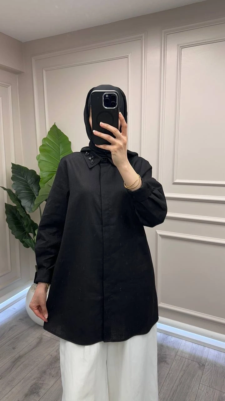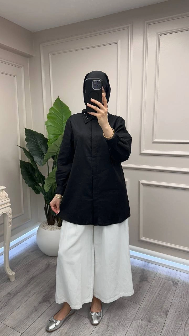 Wennora Siyah Keten Gömlek