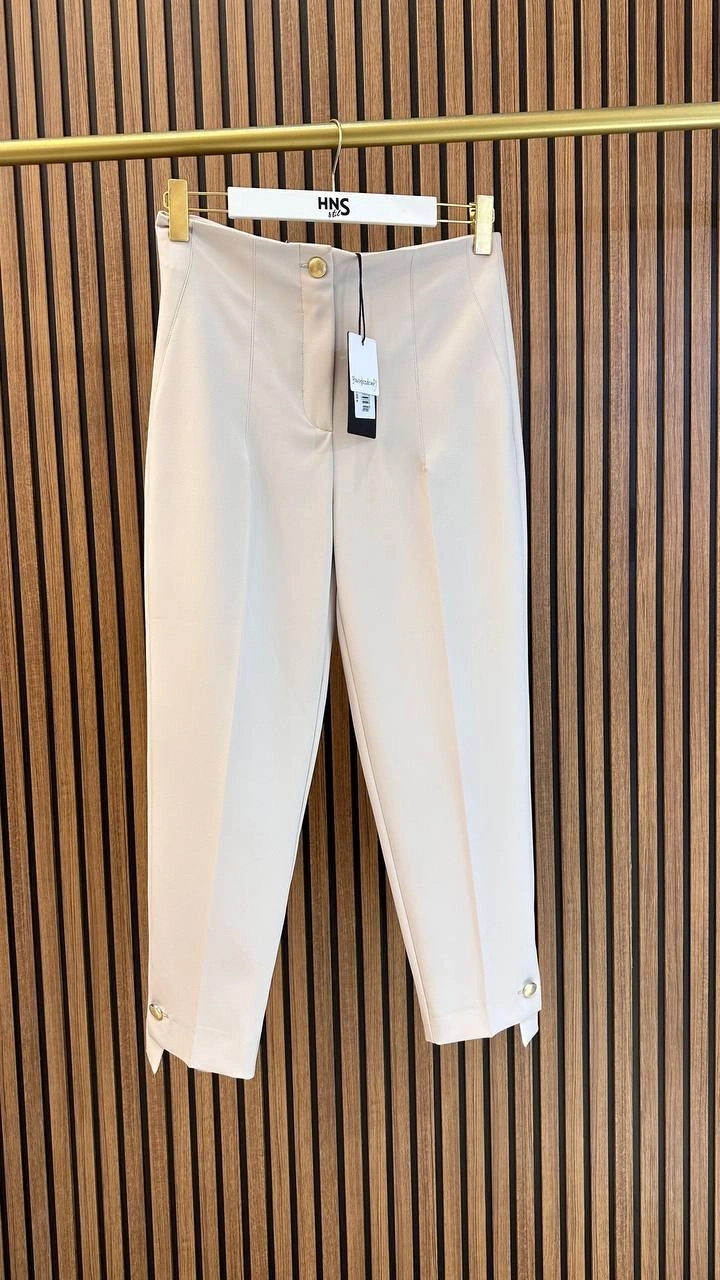 Yusuf Özdemir Bej Düğme Detaylı Pantolon