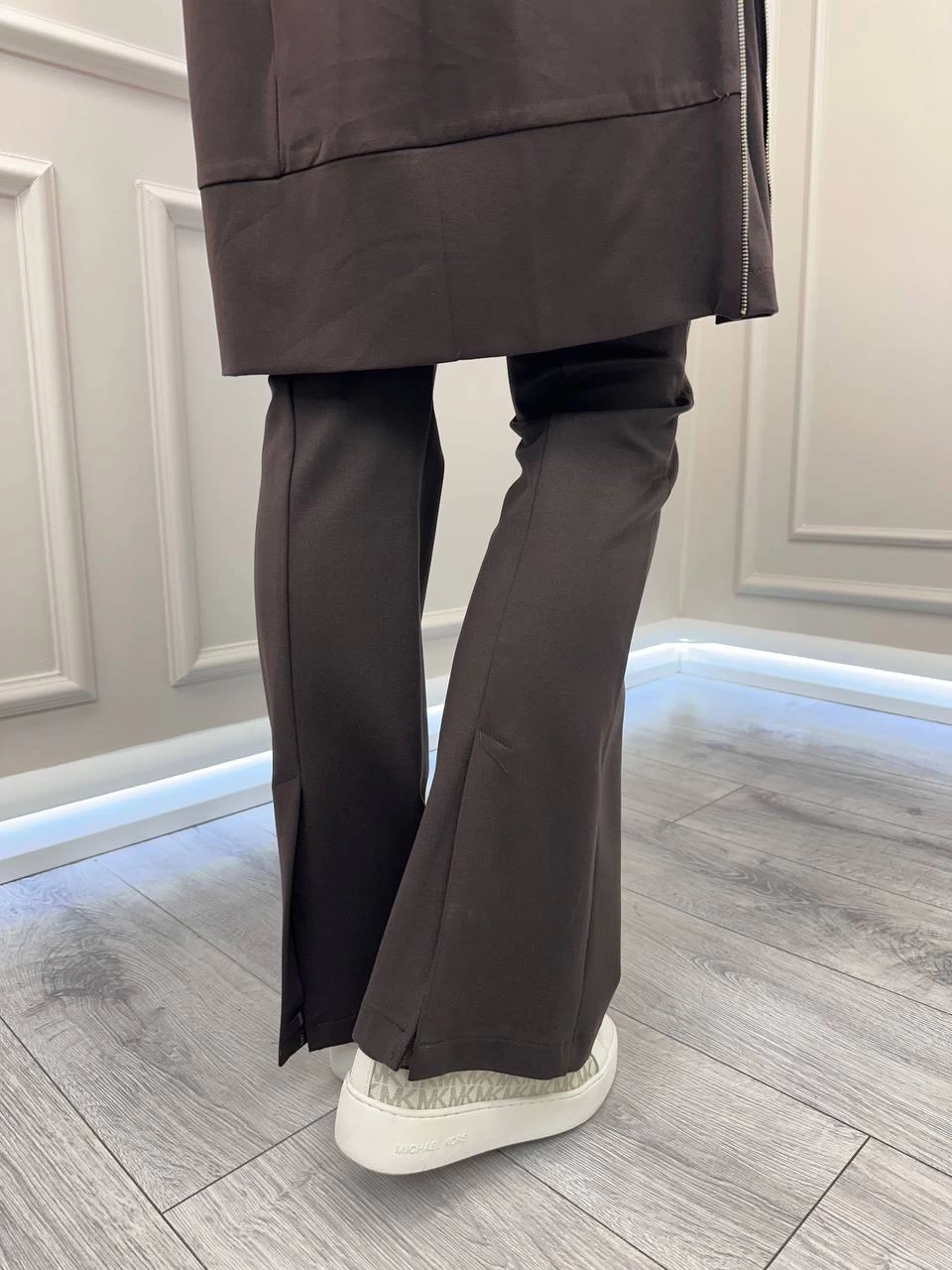 Yusuf Özdemir Kahve Arka Paçası Yırtmaçlı Pantolon
