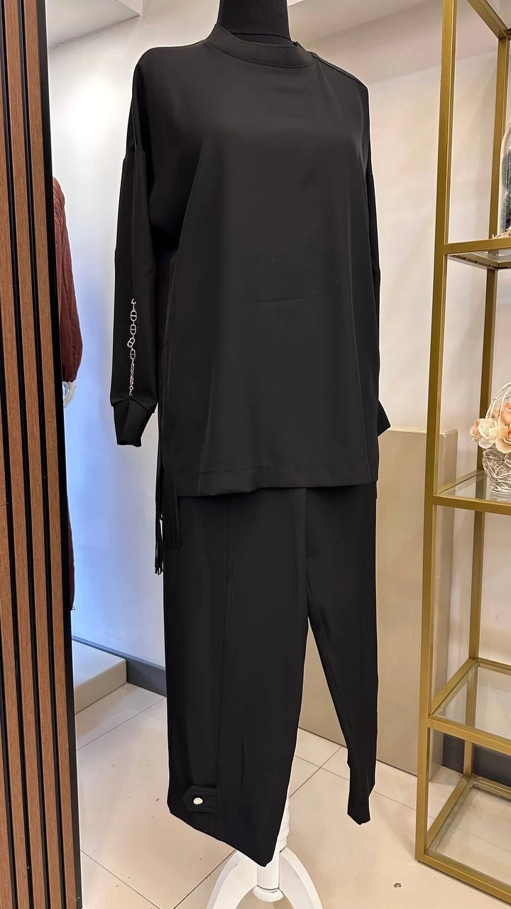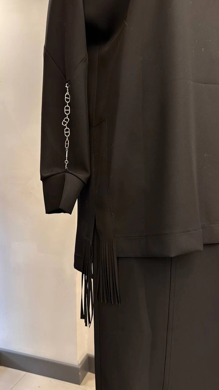 Yusuf Özdemir Siyah Kolları Zincir Detaylı İkili Takım