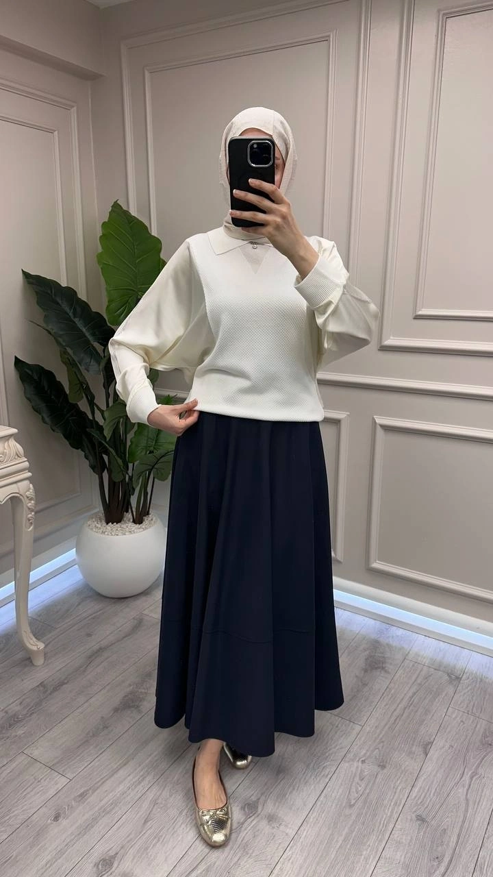 Yusuf Özdemir Lacivert Cepli Etek Ucu Dikişli Etek