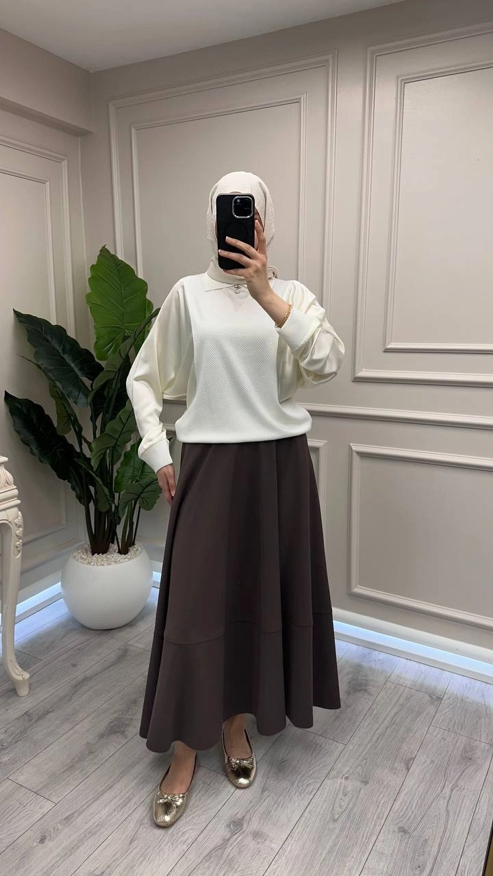 Yusuf Özdemir 26Y1627 Latte Cepli Etek Ucu Dikişli Etek
