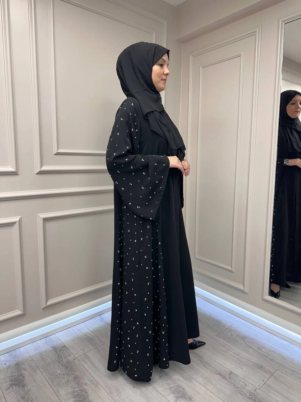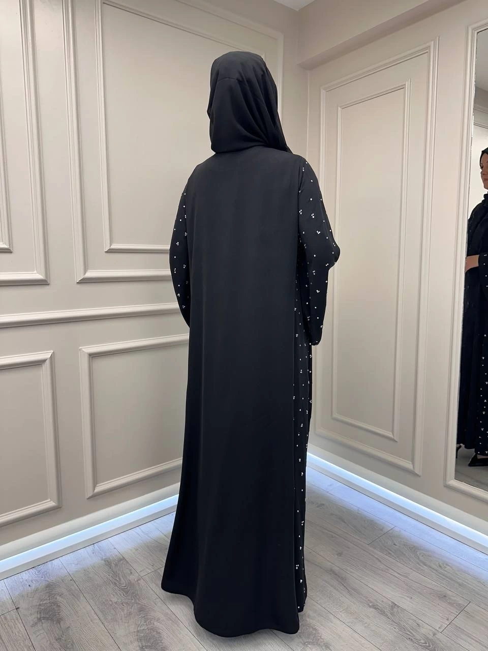 Zigay 1011 Siyah Kolları Ve Yanları Taşlı Abaya