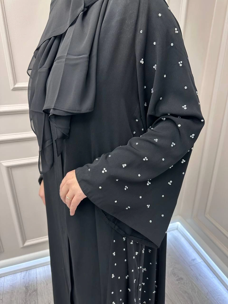 Zigay Siyah Kolları Ve Yanları Taşlı Abaya